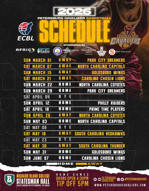 Petersburg Cavaliers are a proud member of the East Coast Basketball League (ECBL) est 2016.